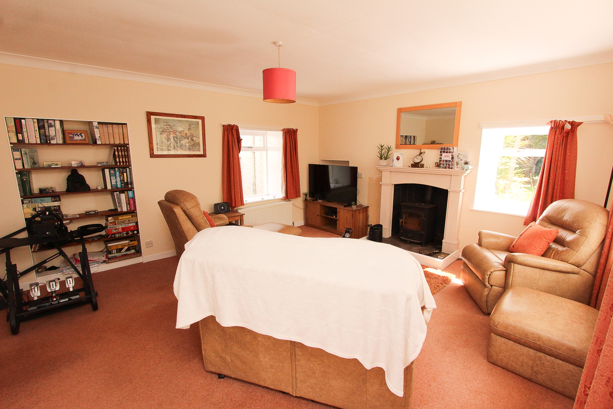 The main house boasts expansive family accommodation spread across two levels and benefits from a 'dining' kitchen, delightful sun lounge to the side, bathrooms on both levels, oil central heating and wood-burning stove.