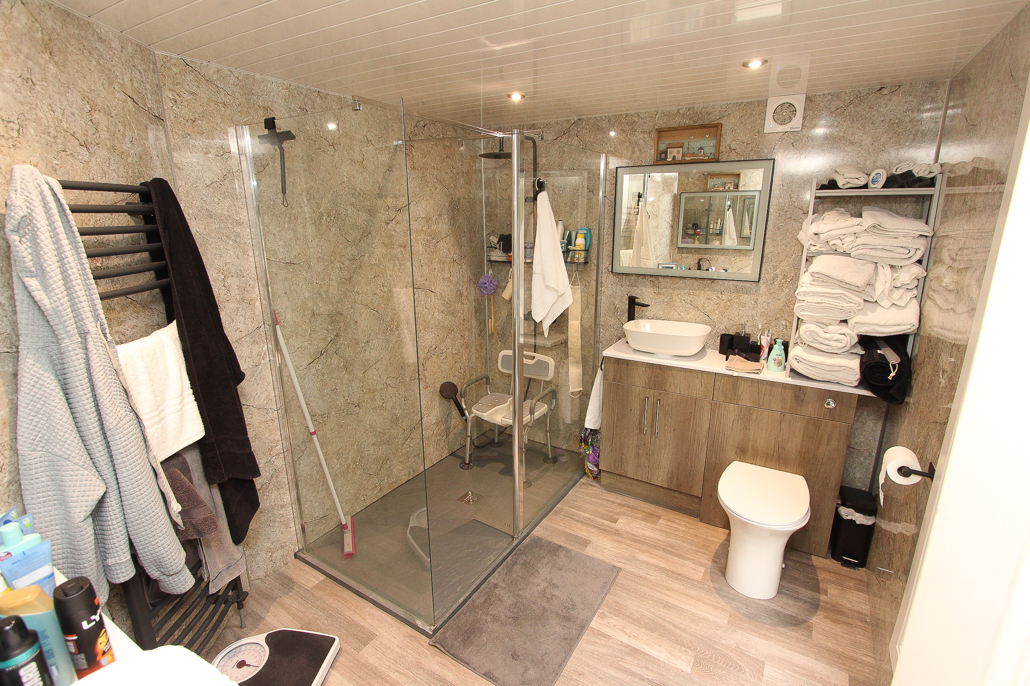The annex has been formed from a former workshop and comprises a beech design kitchen, 2 shower rooms, conservatory to the rear, uPVC double glazing and oil fired central heating.