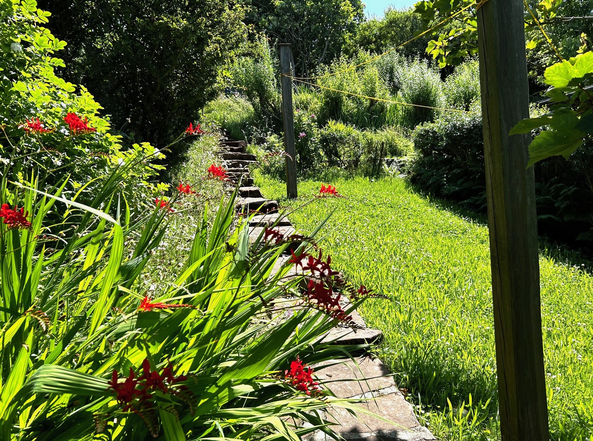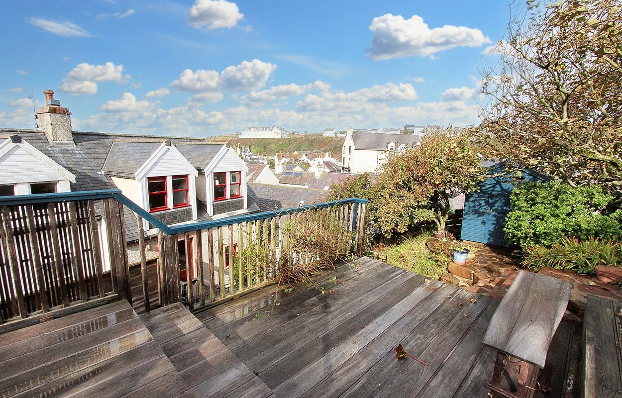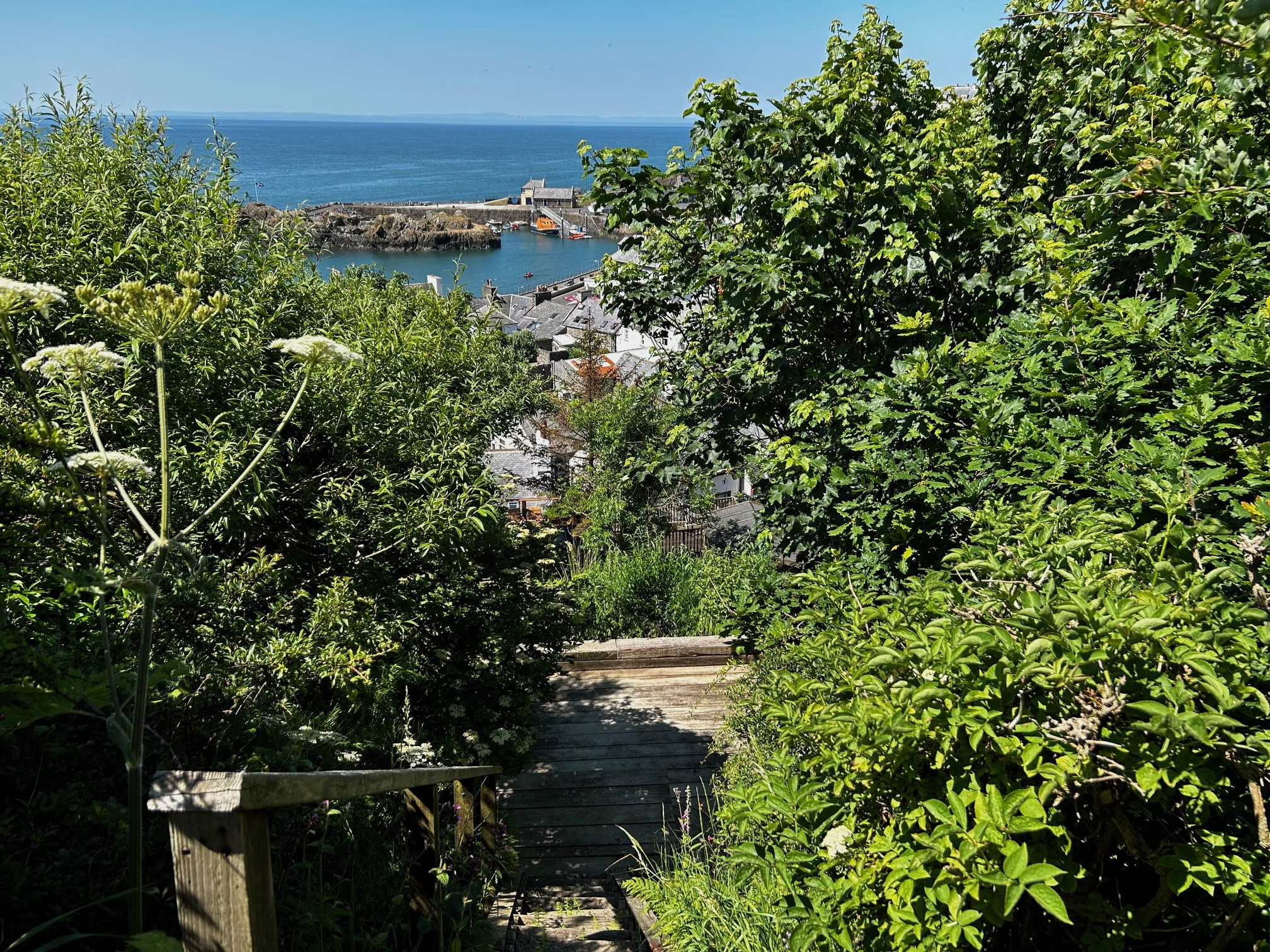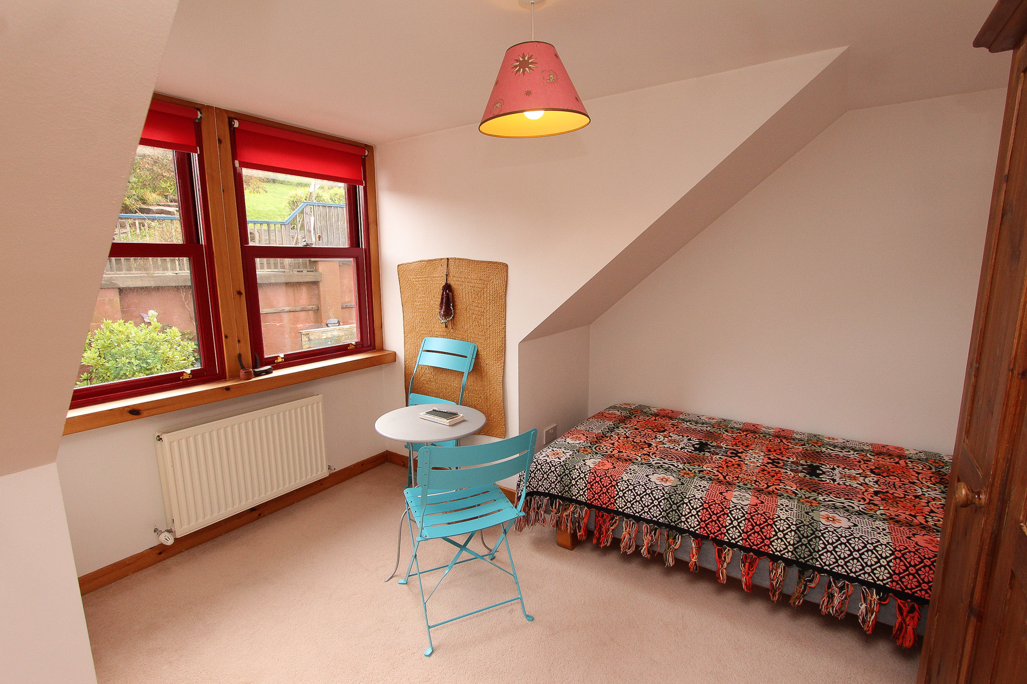 Step outside to discover a generously proportioned terraced garden ground. Offering a seamless blend of natural beauty and functionality, the garden overlooks the village and North Channel beyond, inviting residents to unwind amidst the stunning vistas. Accessible from street level and via a charming bridge from the dining room, the garden beckons with its array of patios, adorned with natural bluebell and willow borders. Ascend the sandstone steps, graced with iron railings, to explore the various terraces, one of which features a tranquil garden pond.