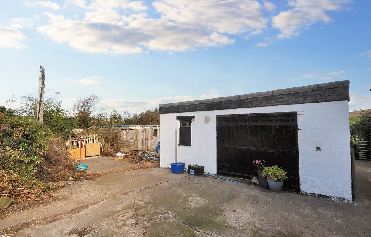 With a generous plot that includes a rear shelter over a concrete area leading to a paved patio. From there, a timber shed and steps guide you to a sizeable lawn area bordered by retaining stone walls and mature hedging. A concrete pathway leads to the front of the property, providing access to the detached garage, while off-road parking is available via a concrete driveway.