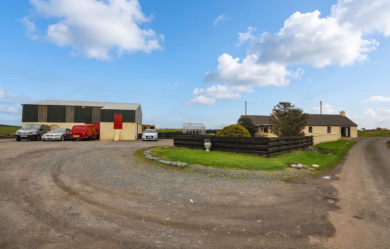 The outside space is a true highlight of this property, featuring generous, fully landscaped garden grounds to the front with well-maintained lawns, paved pathways, planting borders, and attractive stone boundary walls. A large paved area provides access to a practical garden store, which leads to the rear garden grounds. To the rear, the spacious gardens continue, offering further maintained lawns and lush planting borders. There is access to a timber-built garden room, as well as a detached greenhouse for keen gardeners. Practical features include access to an oil tank for central heating and LPG canisters for the gas hob cooker. The property benefits from extensive off-road parking, with a concrete driveway to the front and a gravel drive to the side, which leads to a detached industrial shed, providing additional storage or workshop space. This unique property is ideally suited for those seeking a peaceful rural lifestyle with the benefit of substantial outdoor space and versatile outbuildings.