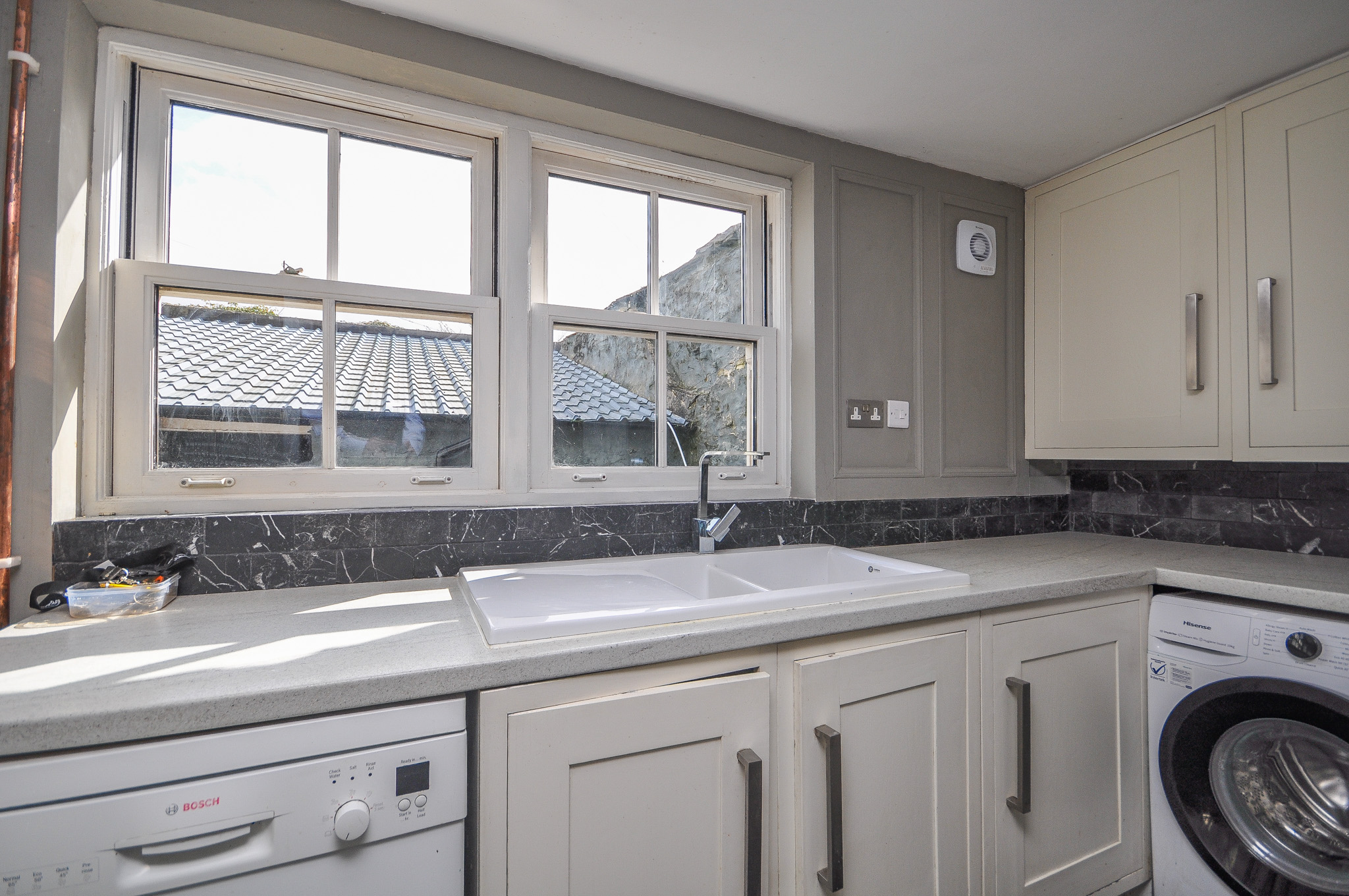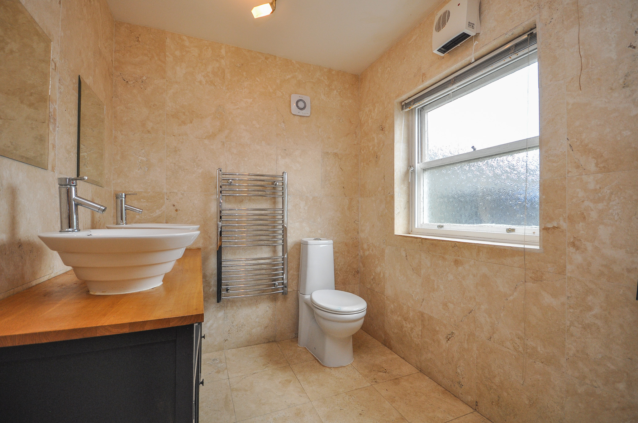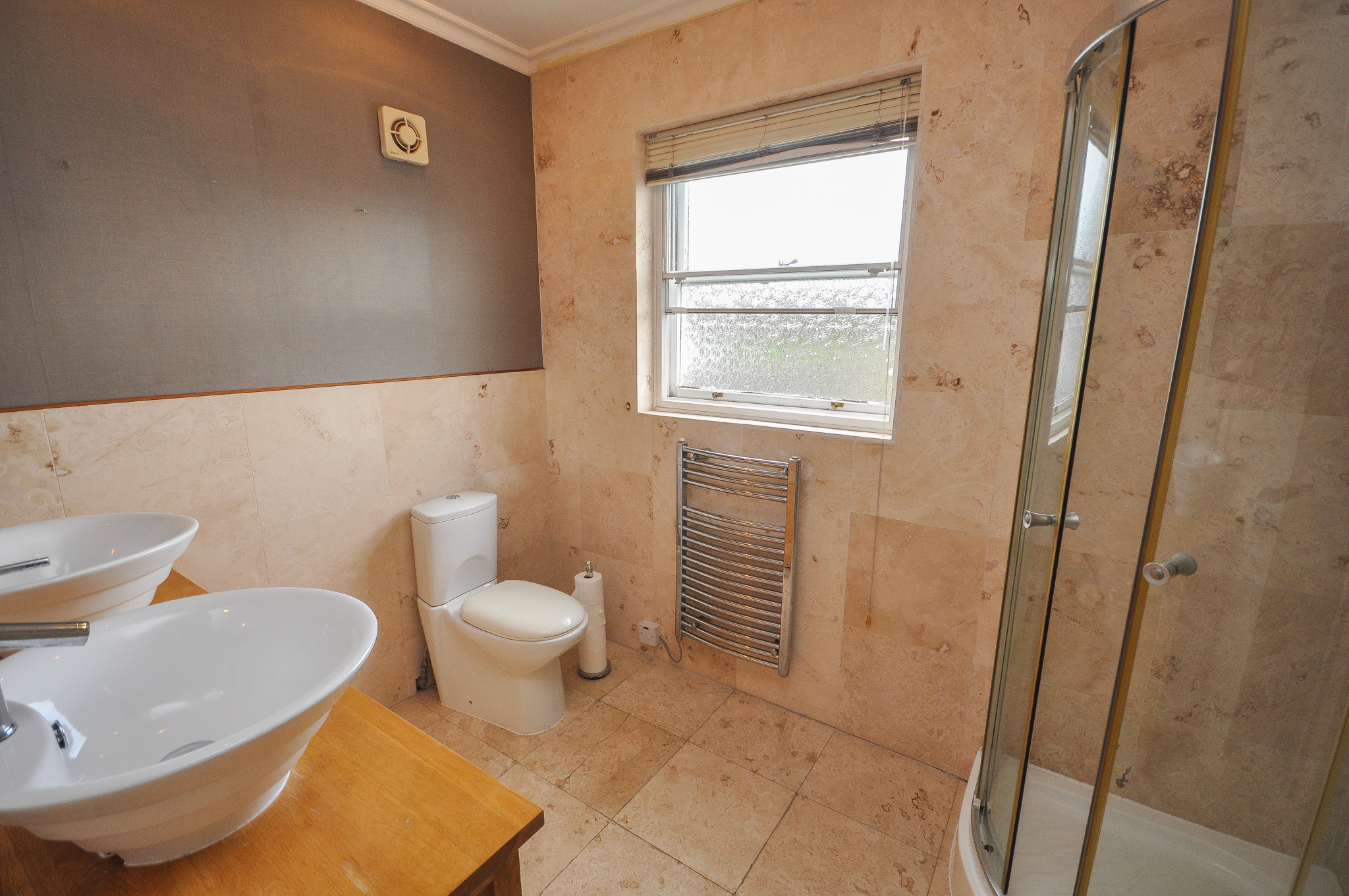 The well-appointed kitchen is fitted with a range-style cooker and provides ample space for dining and entertaining. Accommodation is arranged over multiple levels, with additional bathrooms and shower rooms thoughtfully positioned to serve each floor. The home enjoys a pleasant outlook to the rear, with views over the surrounding countryside, and benefits from air source central heating for efficient comfort throughout the seasons.