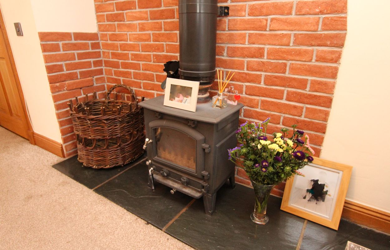 Mains water, drainage and electricity. Wood burning stove. PV solar panels.