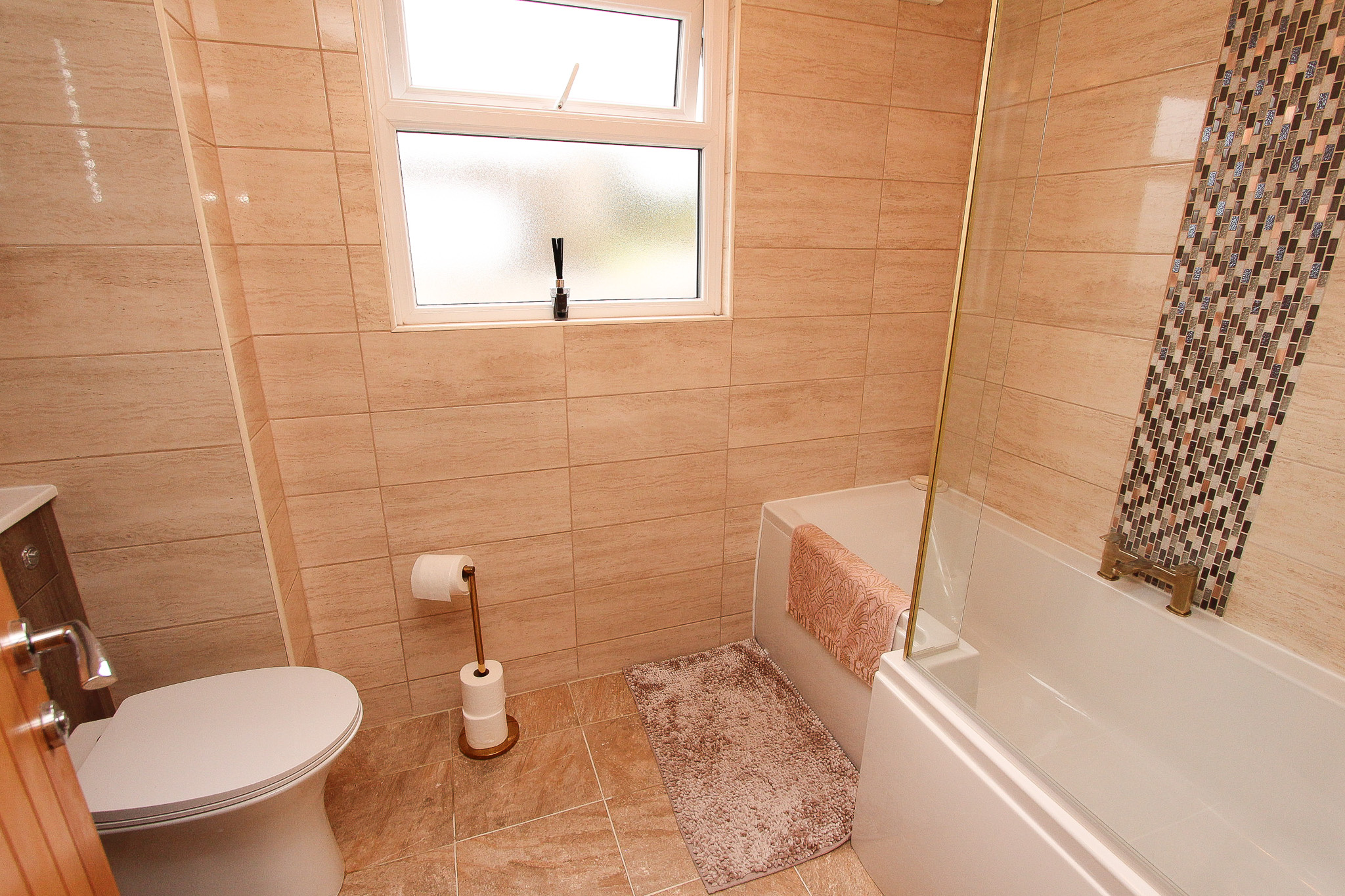 The bathroom exudes luxury with its modern fixtures and fittings, offering a place of relaxation and rejuvenation. The property also benefits from a monoblock driveway that comfortably accommodates multiple vehicles, ensuring that parking is never a concern for residents and guests alike.