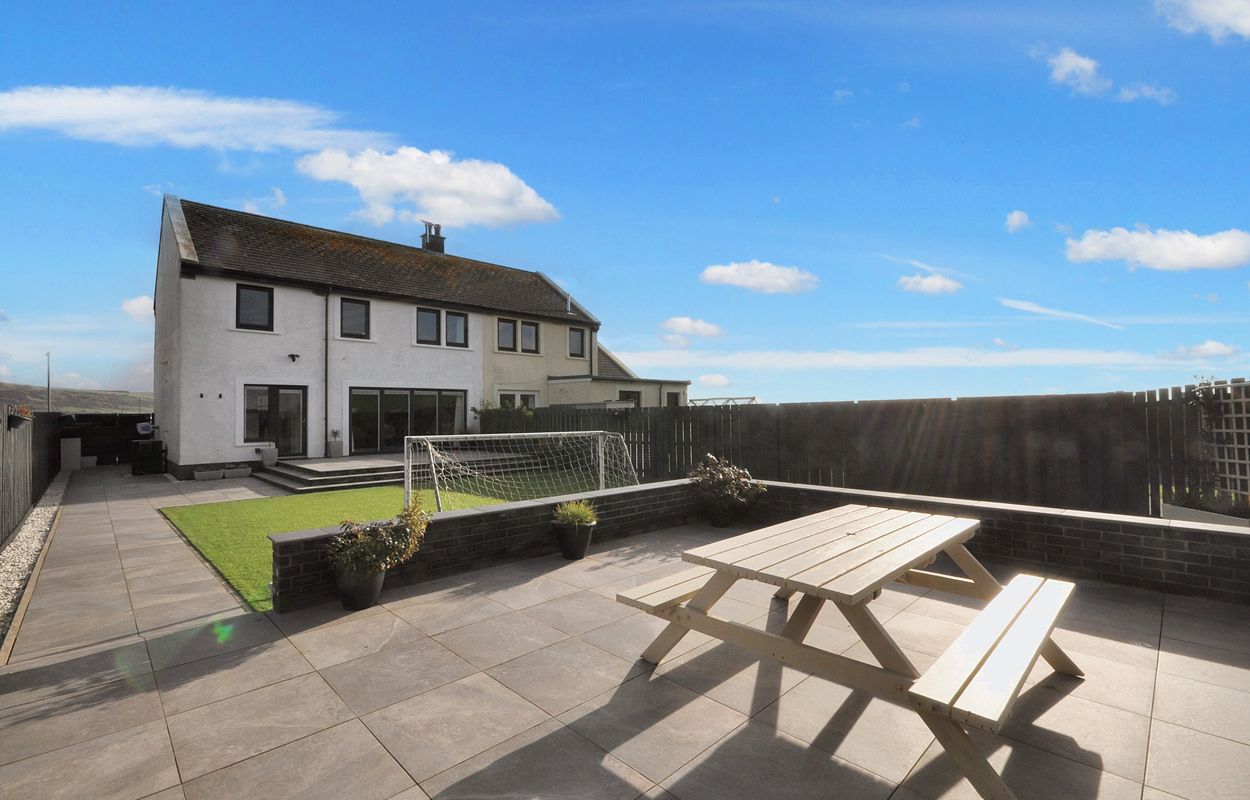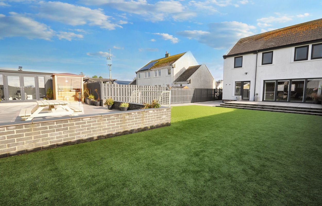 Stepping outside, the property reveals a haven of outdoor delights. The extended, generous-sized garden grounds at the rear have been thoughtfully enhanced, recently landscaped to perfection. A spacious paved patio area, which seamlessly transitions into a paved pathway leading to a large, immaculately maintained artificial lawn. A side gravel border adds a touch of natural charm as well as a second paved patio area with a brick boundary. The detached garden room/gym and coal-fired sauna are easily accessible through this area, promising a holistic lifestyle. As for practicalities, a generous-sized paved driveway at the front of the property offers ample off-road parking for multiple vehicles, ensuring that both convenience and comfort are at the forefront of this coastal sanctuary.