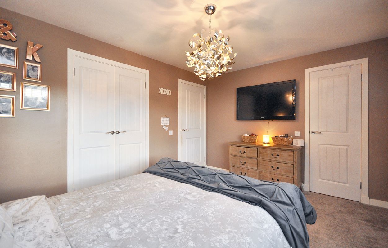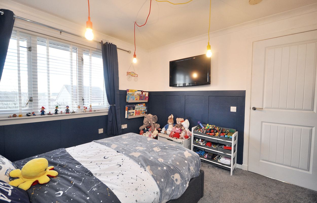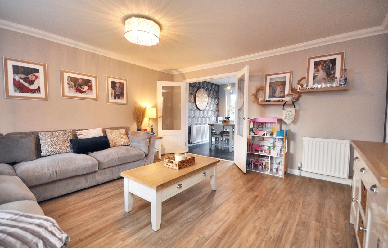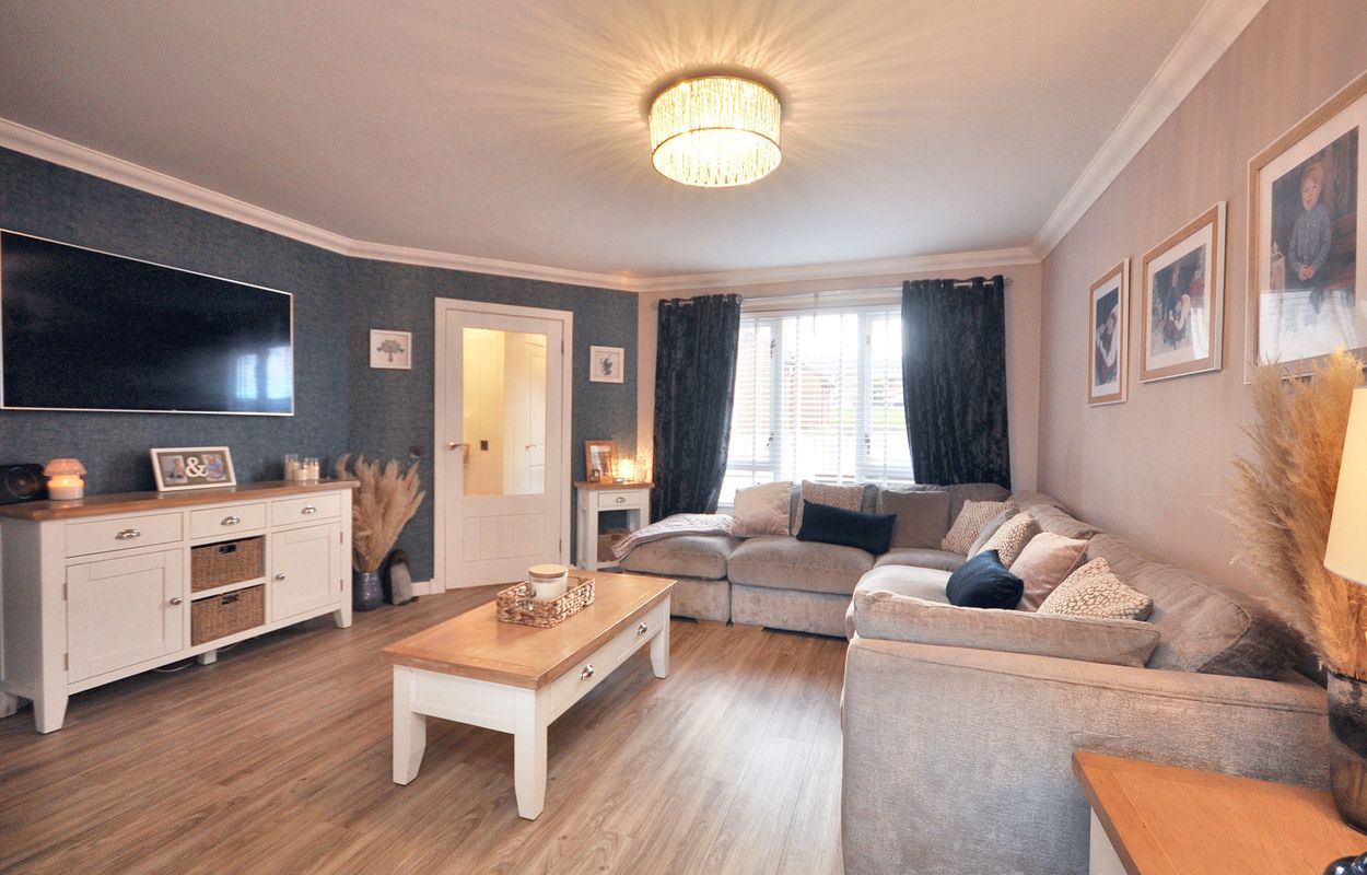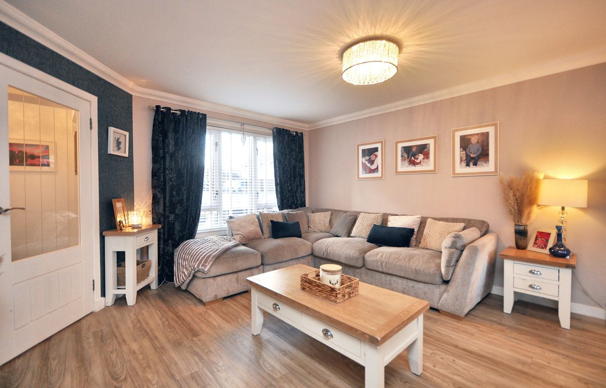 The outside space of this property offers a generously sized and well-maintained garden with a corner plot layout. The concrete paved pathway and patio are surrounded by gravel border to the rear, leading to a recently installed timber garden store and separate storage shed, both enclosed by panel fencing. A pathway extends to a raised paved patio, connecting to a large maintained lawn area with planting border. The property also features a generous tarmac driveway at the front, facilitating ample parking space for multiple vehicles, alongside a raised gravel border for added aesthetic charm.
