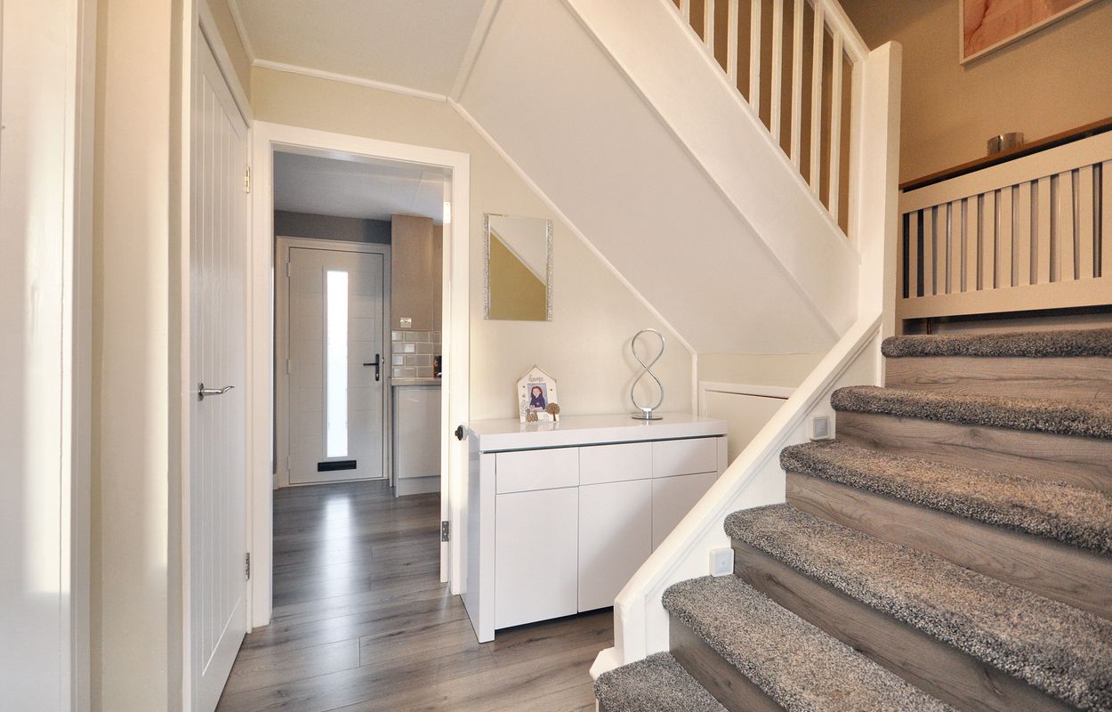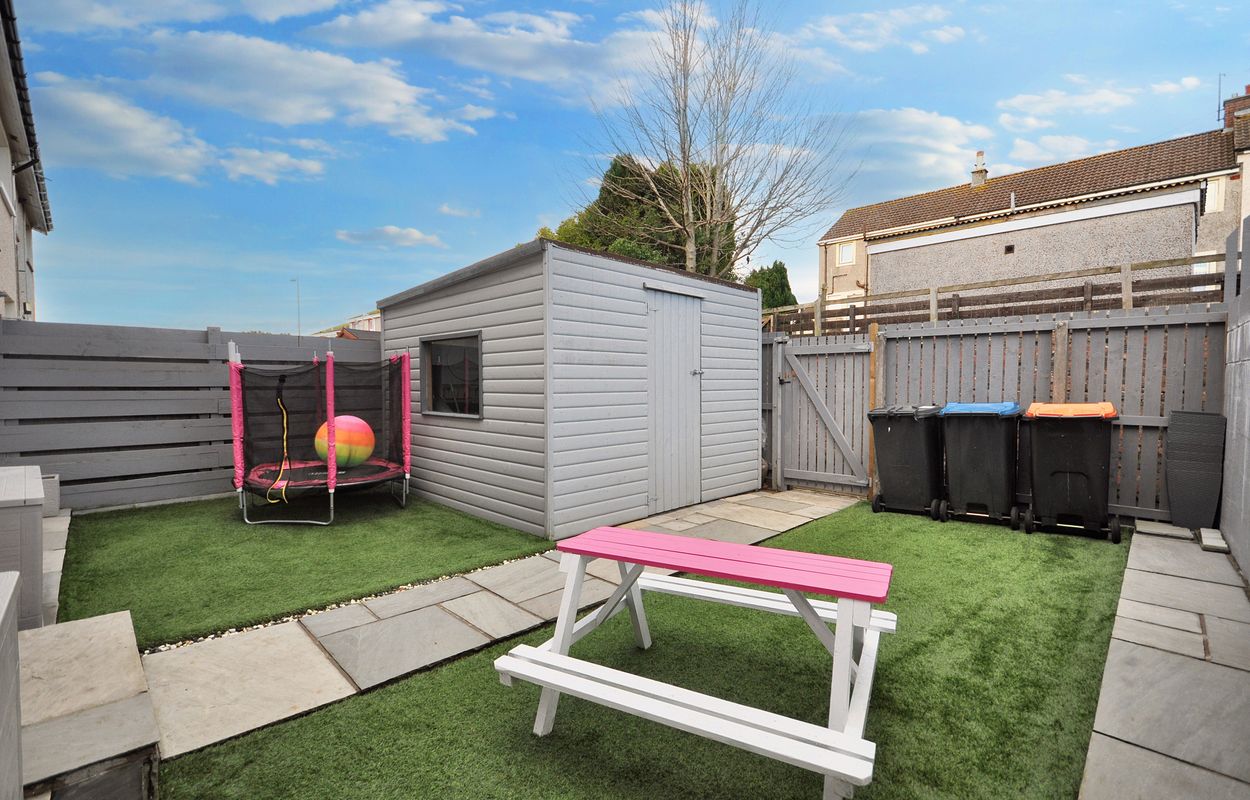 Externally, the property features recently landscaped and fully enclosed garden grounds to the rear, designed with ease of maintenance and outdoor enjoyment in mind. The rear garden comprises a concrete paved pathway that surrounds an artificial lawn, ideal for year-round use, and includes a practical timber built shed for additional storage. All boundaries are secured by timber fencing, with the added benefit of rear gate access for convenience. The front garden has also been thoughtfully landscaped, featuring a brick pebble dashed boundary wall, a paved pathway leading to the entrance, and generous gravel borders that require minimal upkeep.