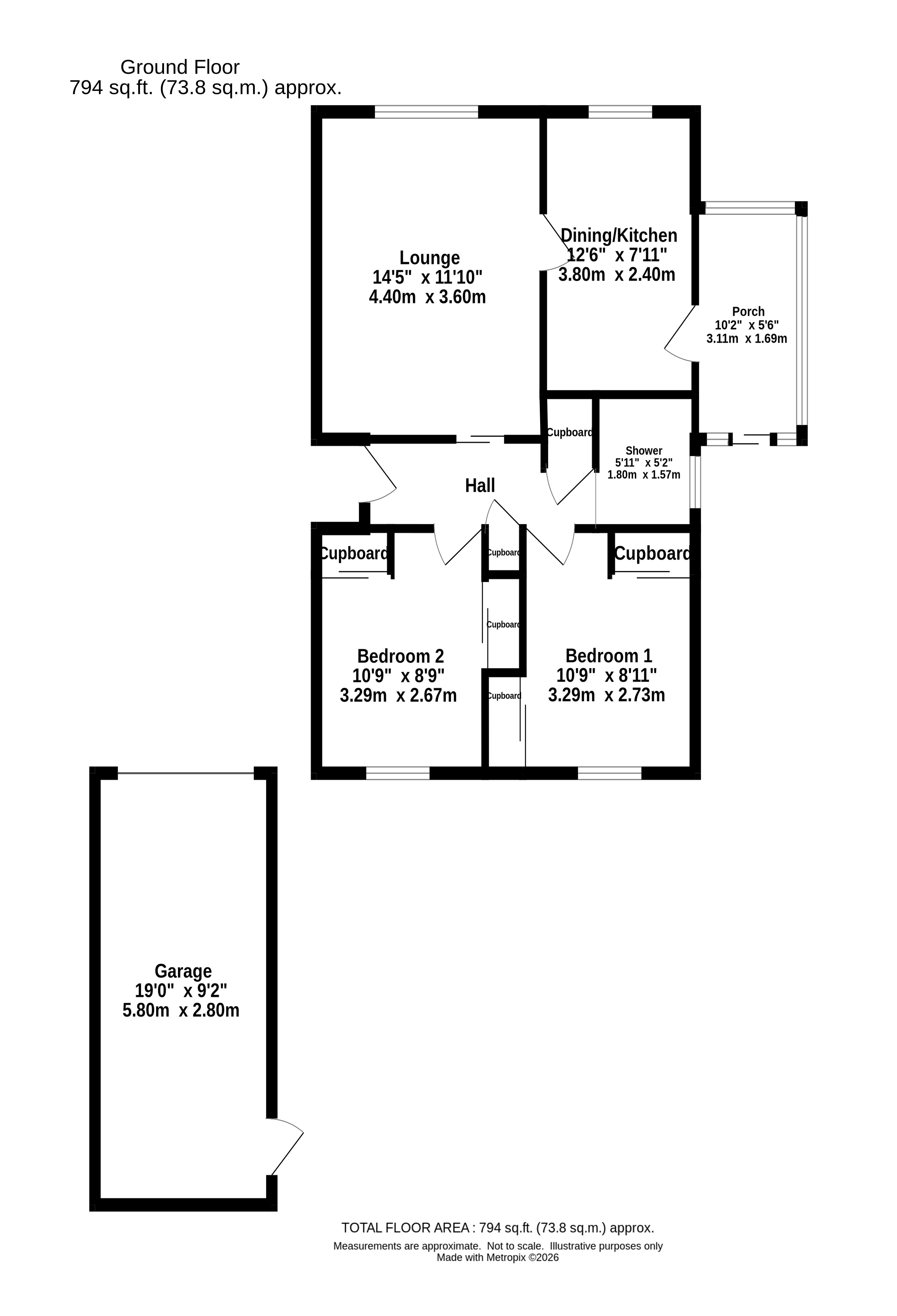 Situated within a sought-after residential area, this modern two-bedroom detached bungalow presents an exceptional opportunity for discerning buyers seeking comfort and convenience. The property boasts a welcoming and thoughtfully arranged interior, with a spacious dining kitchen that serves as the heart of the home, a recently installed shower room, while electric heating and uPVC double glazing ensure year-round comfort. Both bedrooms benefit from two built-in wardrobes.