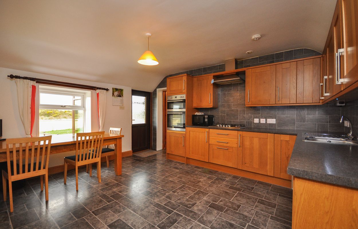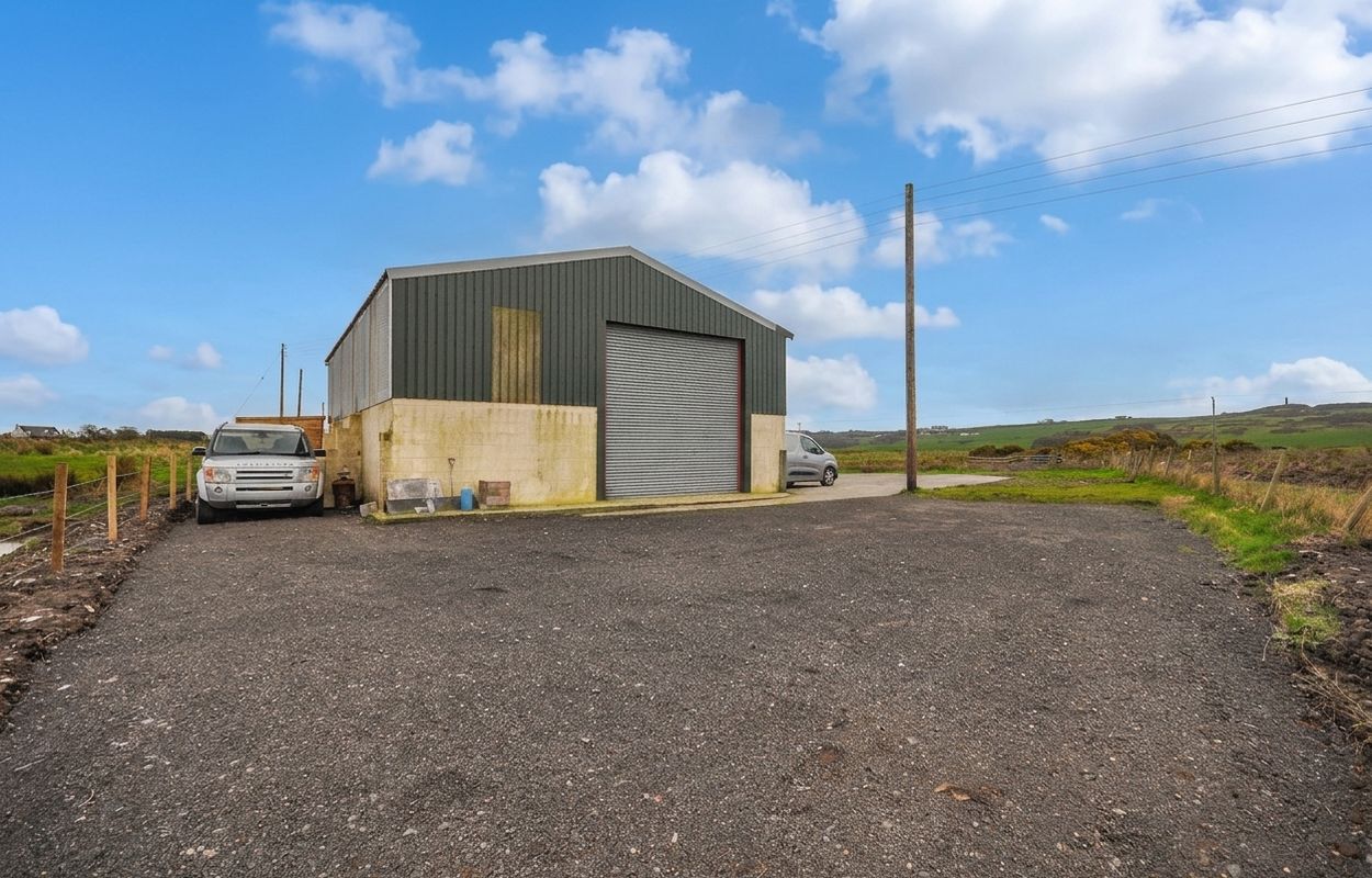 The outside space is a true highlight of this property, featuring generous, fully landscaped garden grounds to the front with well-maintained lawns, paved pathways, planting borders, and attractive stone boundary walls. A large paved area provides access to a practical garden store, which leads to the rear garden grounds. To the rear, the spacious gardens continue, offering further maintained lawns and lush planting borders. There is access to a timber-built garden room, as well as a detached greenhouse for keen gardeners. Practical features include access to an oil tank for central heating and LPG canisters for the gas hob cooker. The property benefits from extensive off-road parking, with a concrete driveway to the front and a gravel drive to the side, which leads to a detached industrial shed, providing additional storage or workshop space. This unique property is ideally suited for those seeking a peaceful rural lifestyle with the benefit of substantial outdoor space and versatile outbuildings.
