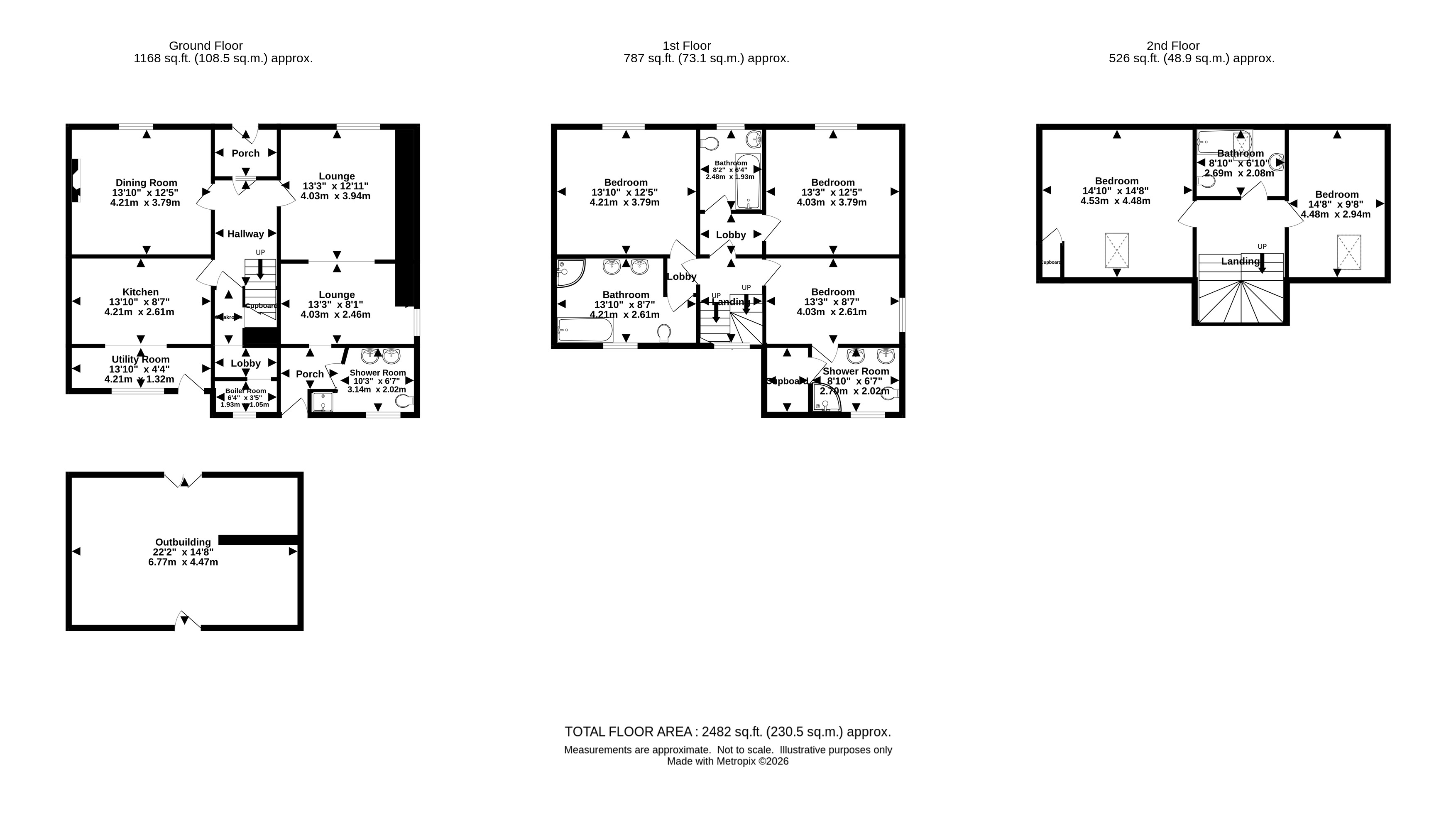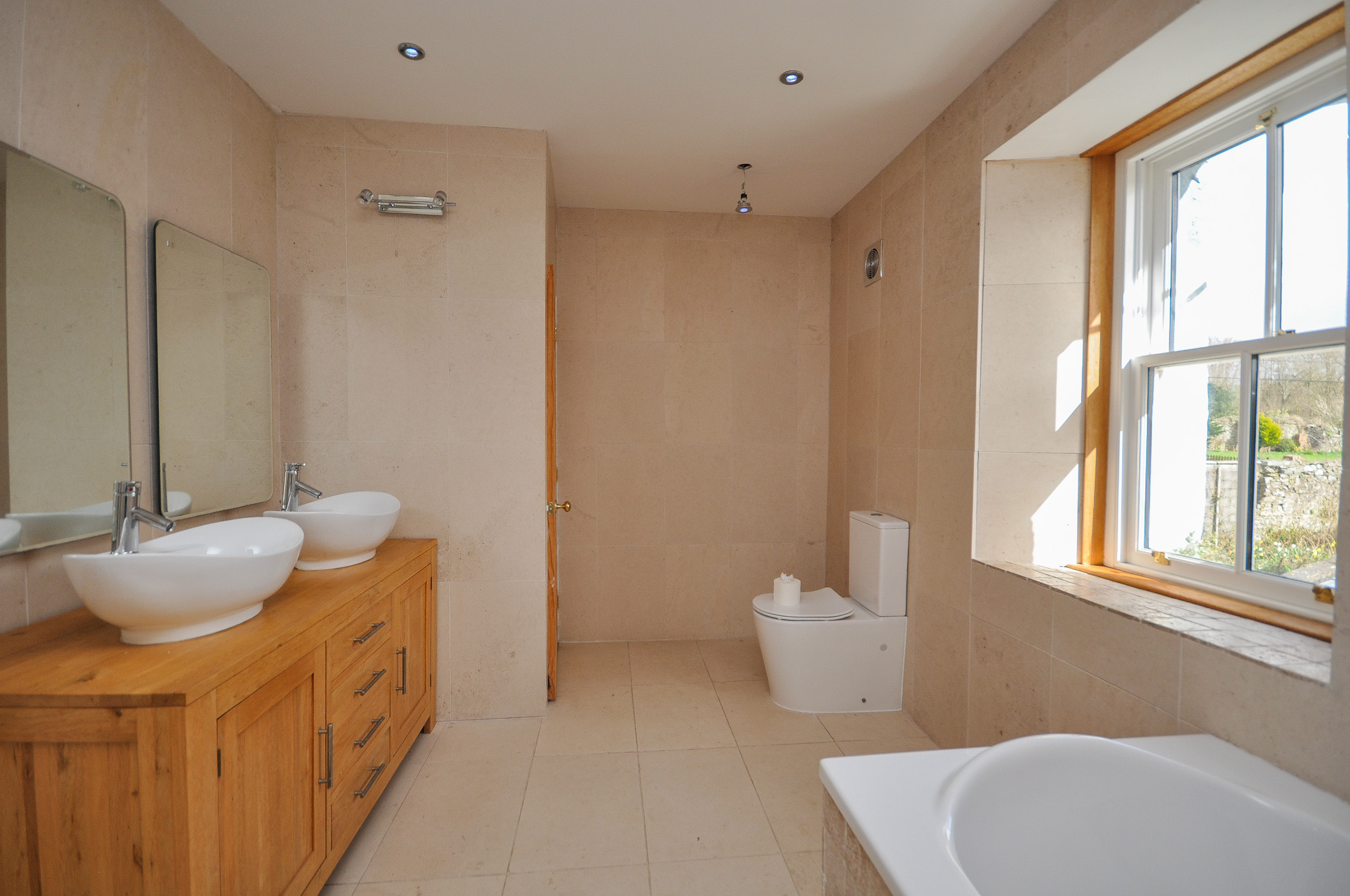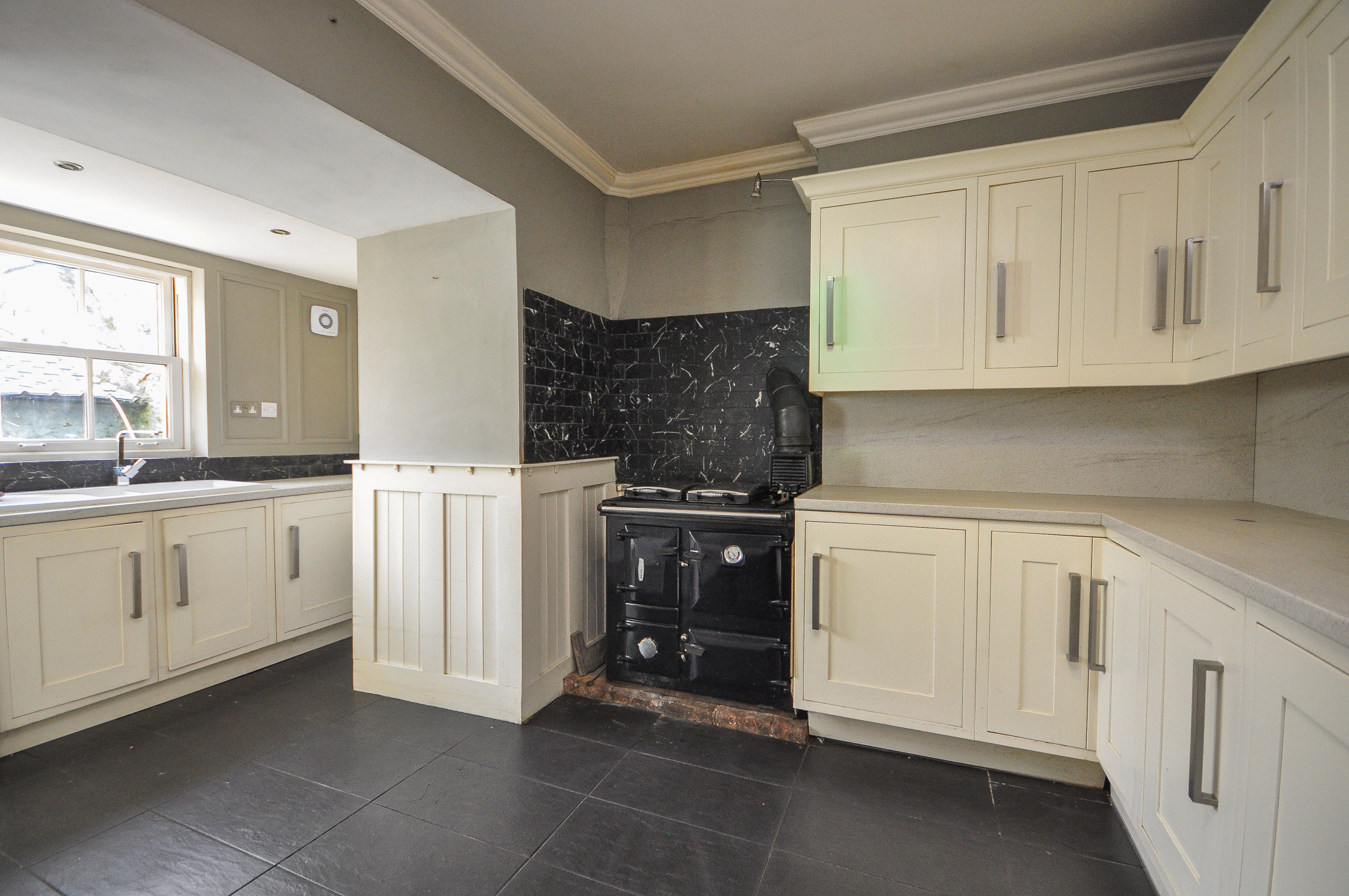 The well-appointed kitchen is fitted with a range-style cooker and provides ample space for dining and entertaining. Accommodation is arranged over multiple levels, with additional bathrooms and shower rooms thoughtfully positioned to serve each floor. The home enjoys a pleasant outlook to the rear, with views over the surrounding countryside, and benefits from air source central heating for efficient comfort throughout the seasons.