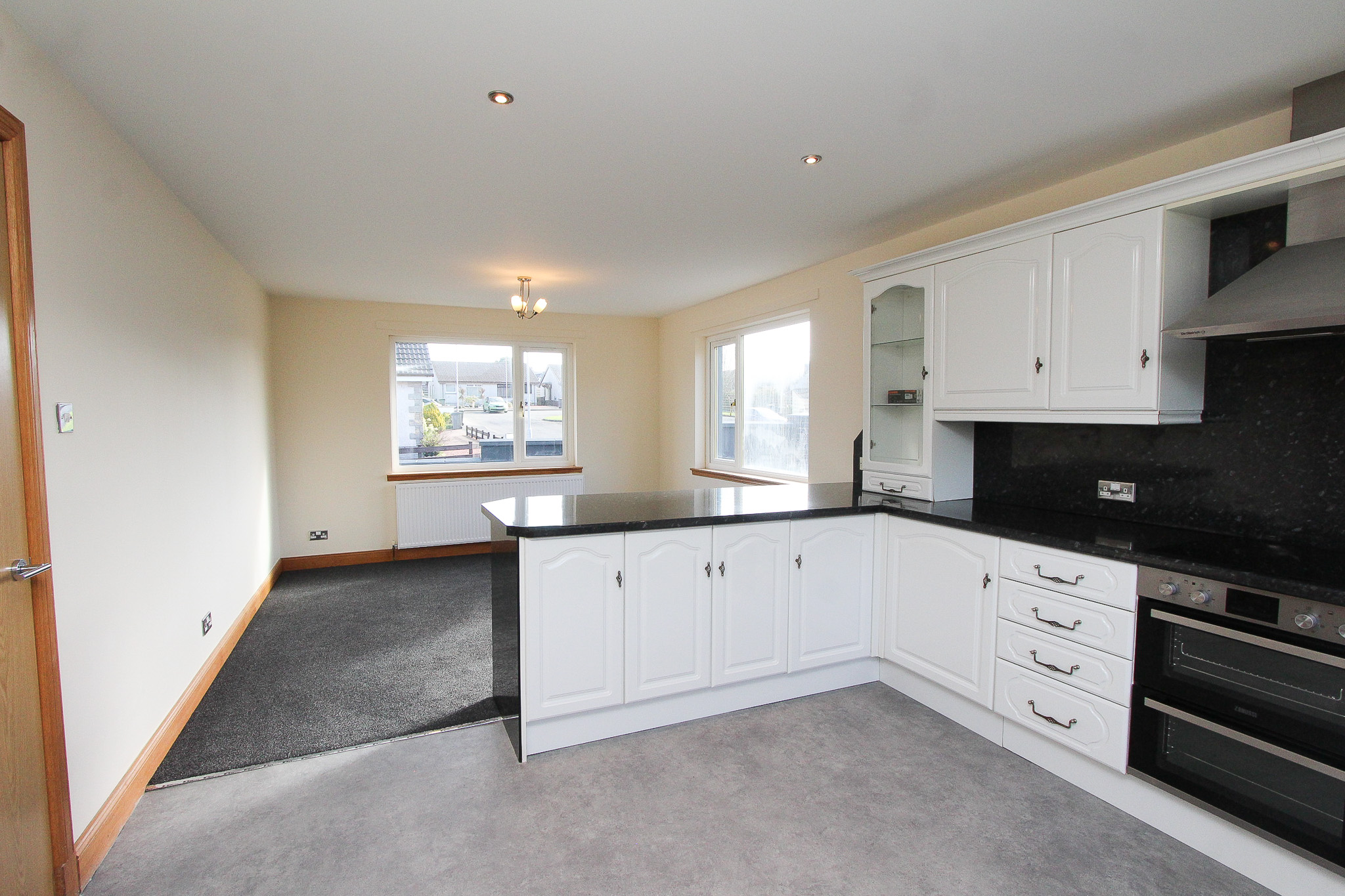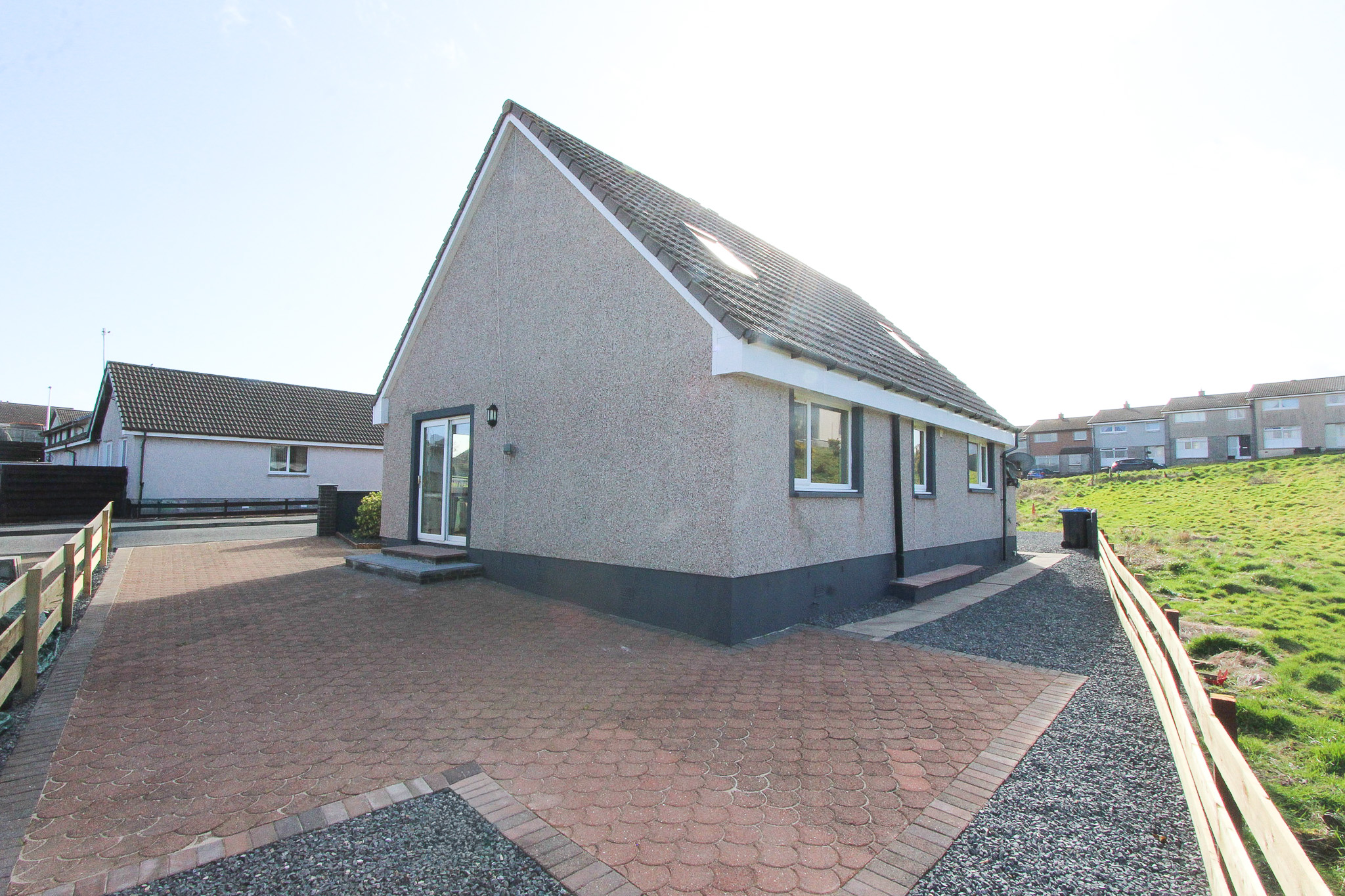 Outside, the property is set amidst its own garden grounds, designed for ease of maintenance. The front and rear gardens are attractively laid out with a combination of monobloc paving and gravel, providing a smart, low-maintenance environment that is perfect for relaxing or entertaining outdoors. To the side of the house, a further area of garden ground has been prepared and scraped clean, offering a blank canvas for new owners to landscape and develop according to their preferences. Ample off-road parking is available on both sides of the property, ensuring convenience for multiple vehicles or visiting guests.